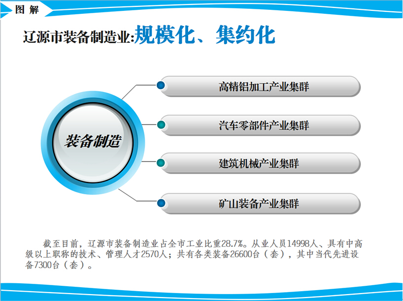 遼源市裝備制造業(yè)經(jīng)過多年的建設(shè)與發(fā)展,現(xiàn)已呈現(xiàn)出產(chǎn)業(yè)集群規(guī)?;⒓s化發(fā)展態(tài)勢。截至目前,遼源市裝備制造業(yè)占全市工業(yè)比重28.7%。從業(yè)人員14998人、具有中高級以上職稱的技術(shù)、管理人才2570人;共有各類裝備26600臺(套),其中當(dāng)代先進(jìn)設(shè)備7300臺(套)。